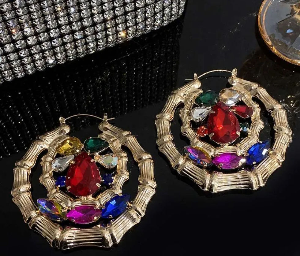Gold Bamboo colorful rhinestones earrings